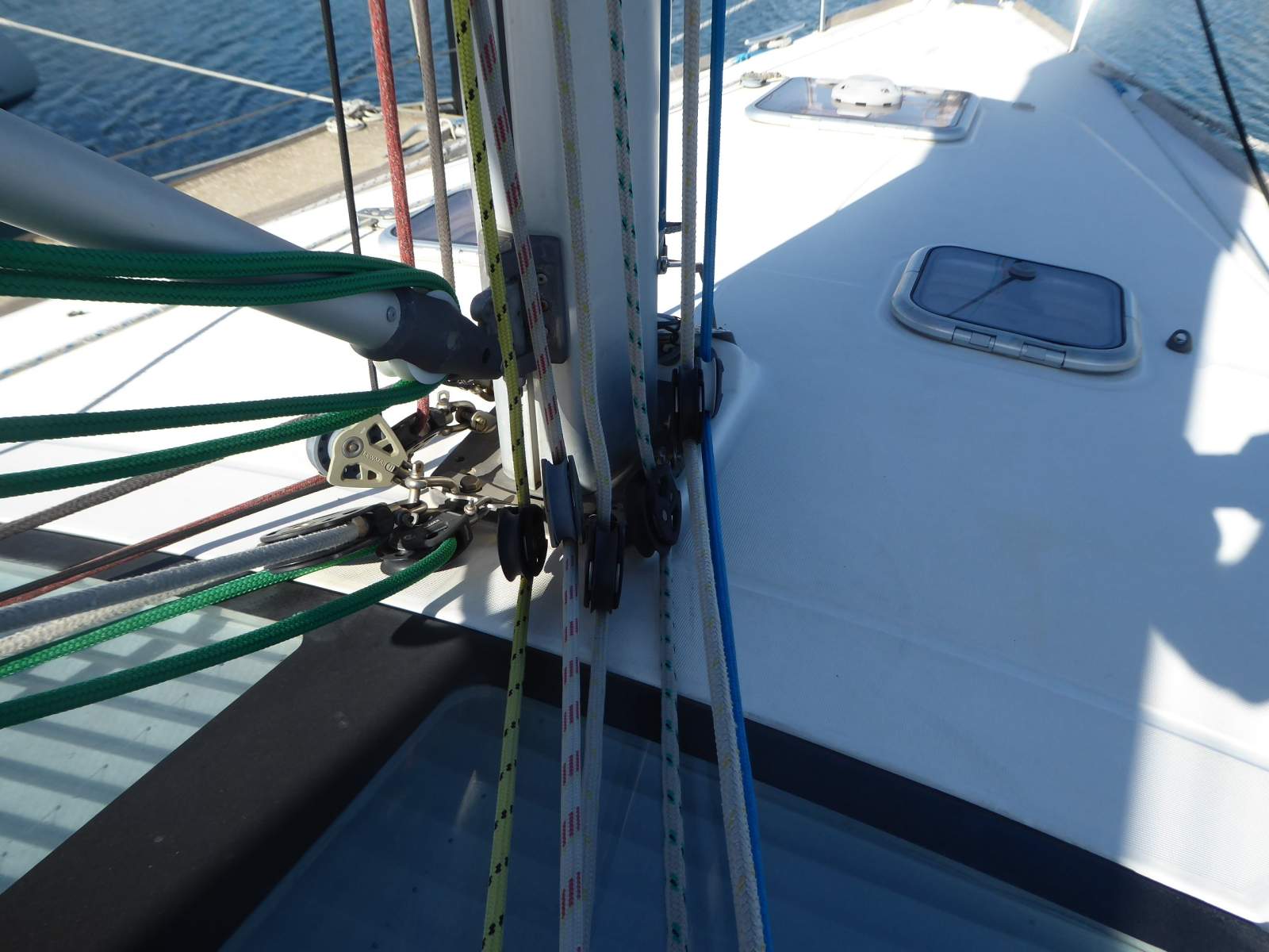 Spare electrical cables up the mast. Full mast rewire done by Elec Marine 2017.