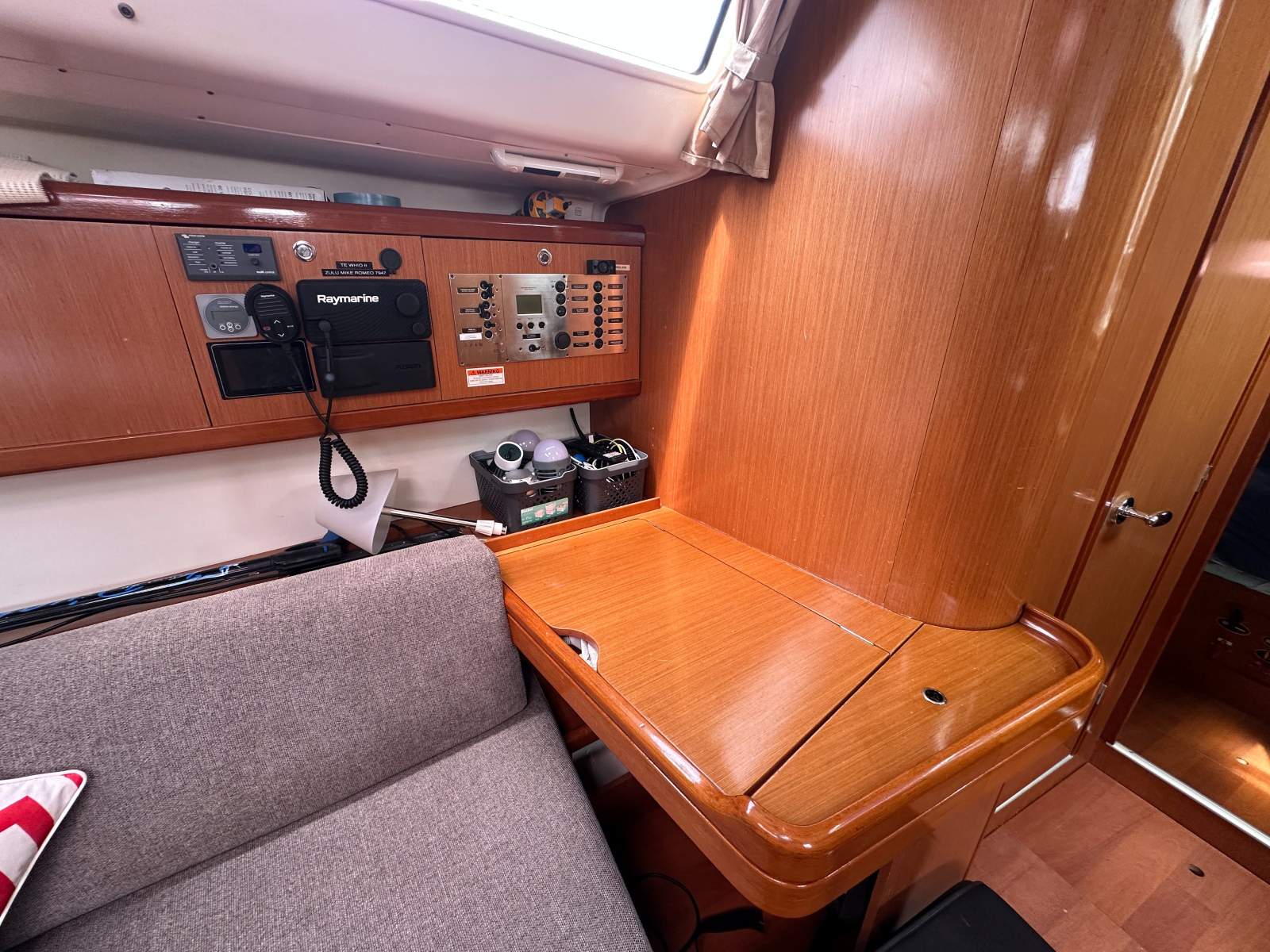 Sail handling is straightforward and efficient with Harken winches, roller furling genoa and a full batten mainsail, complemented by additional downwind and storm sails for versatility across varying wind strengths. She is well set up for short handed sailing without compromising performance.