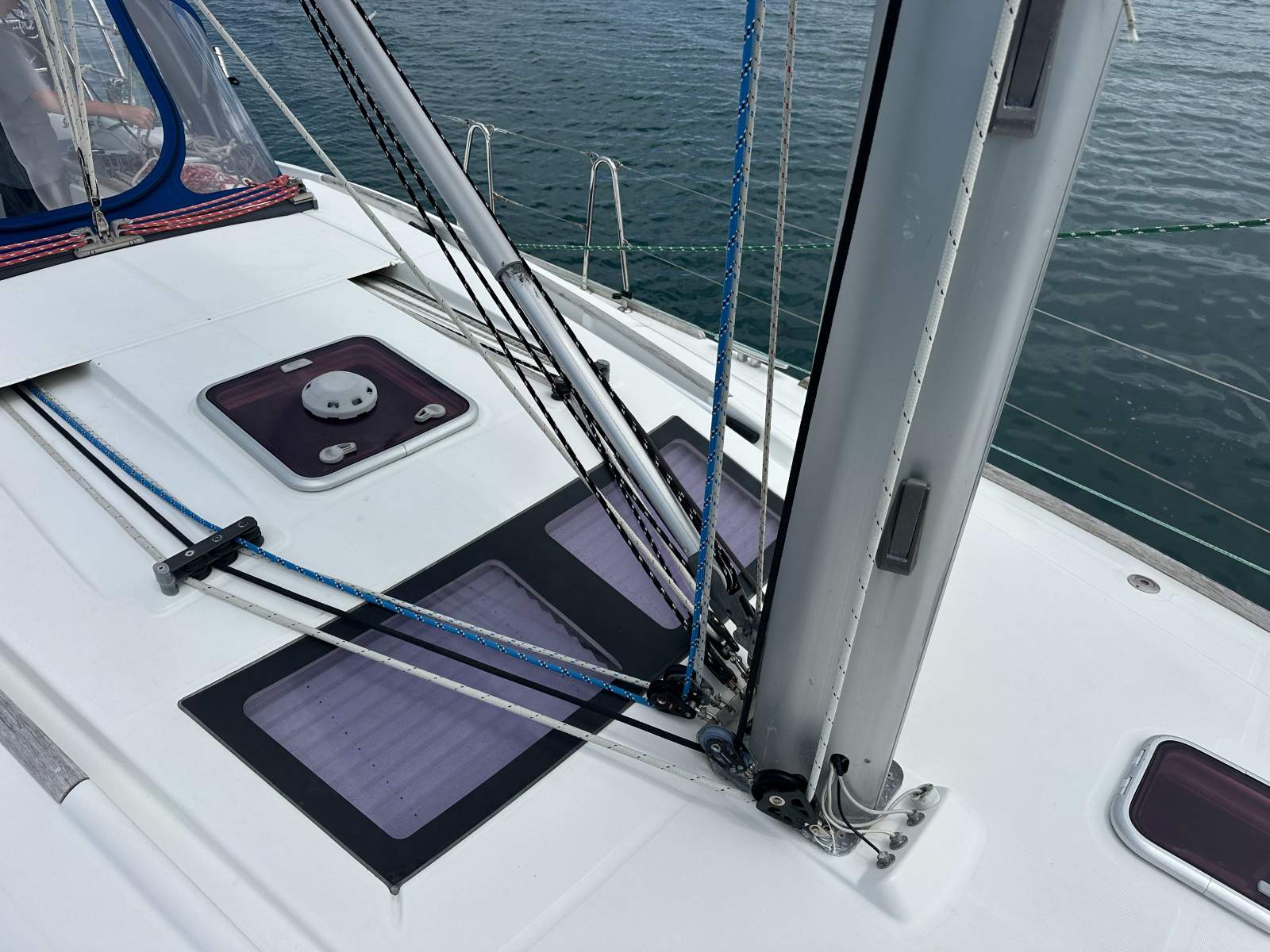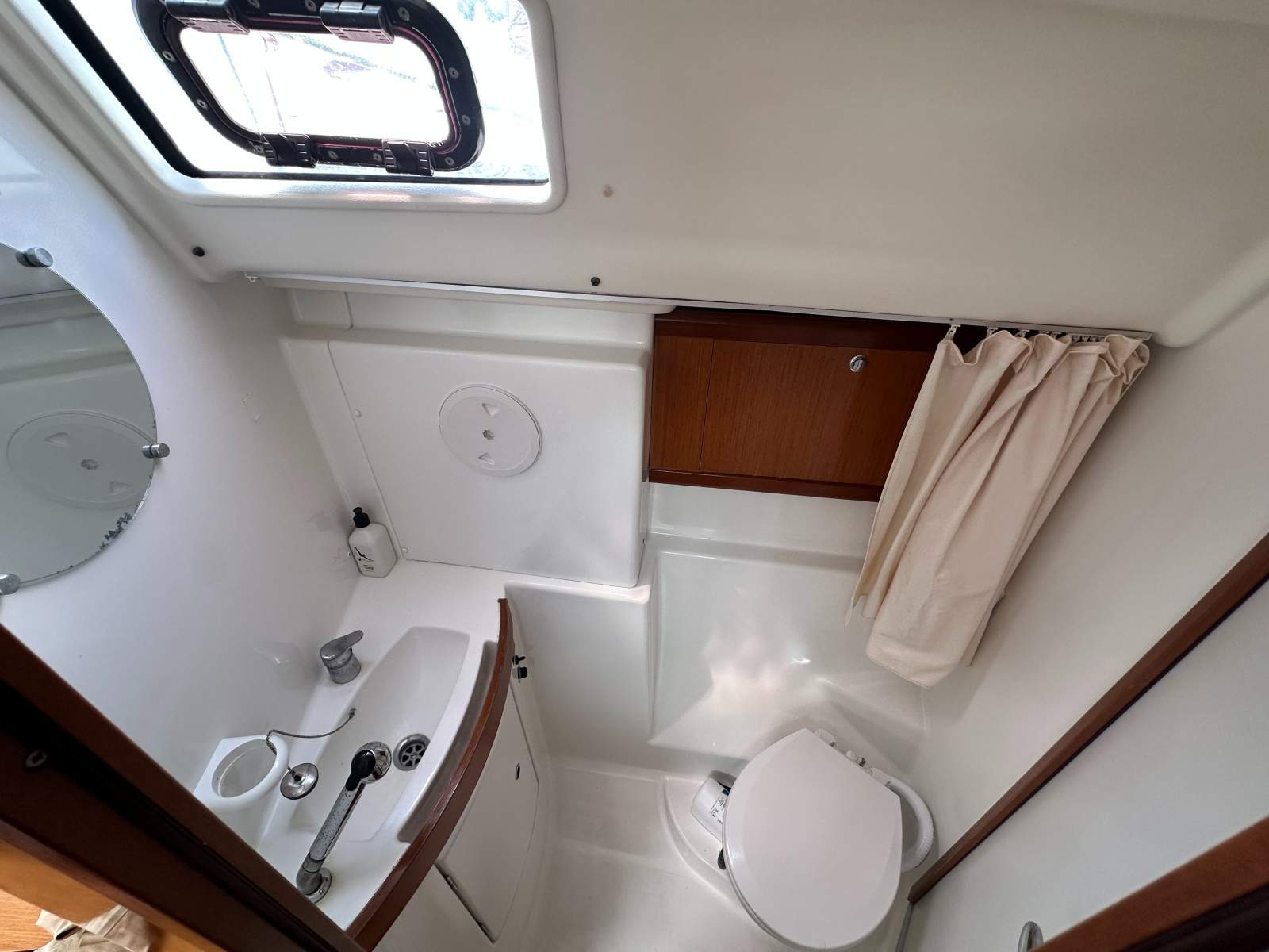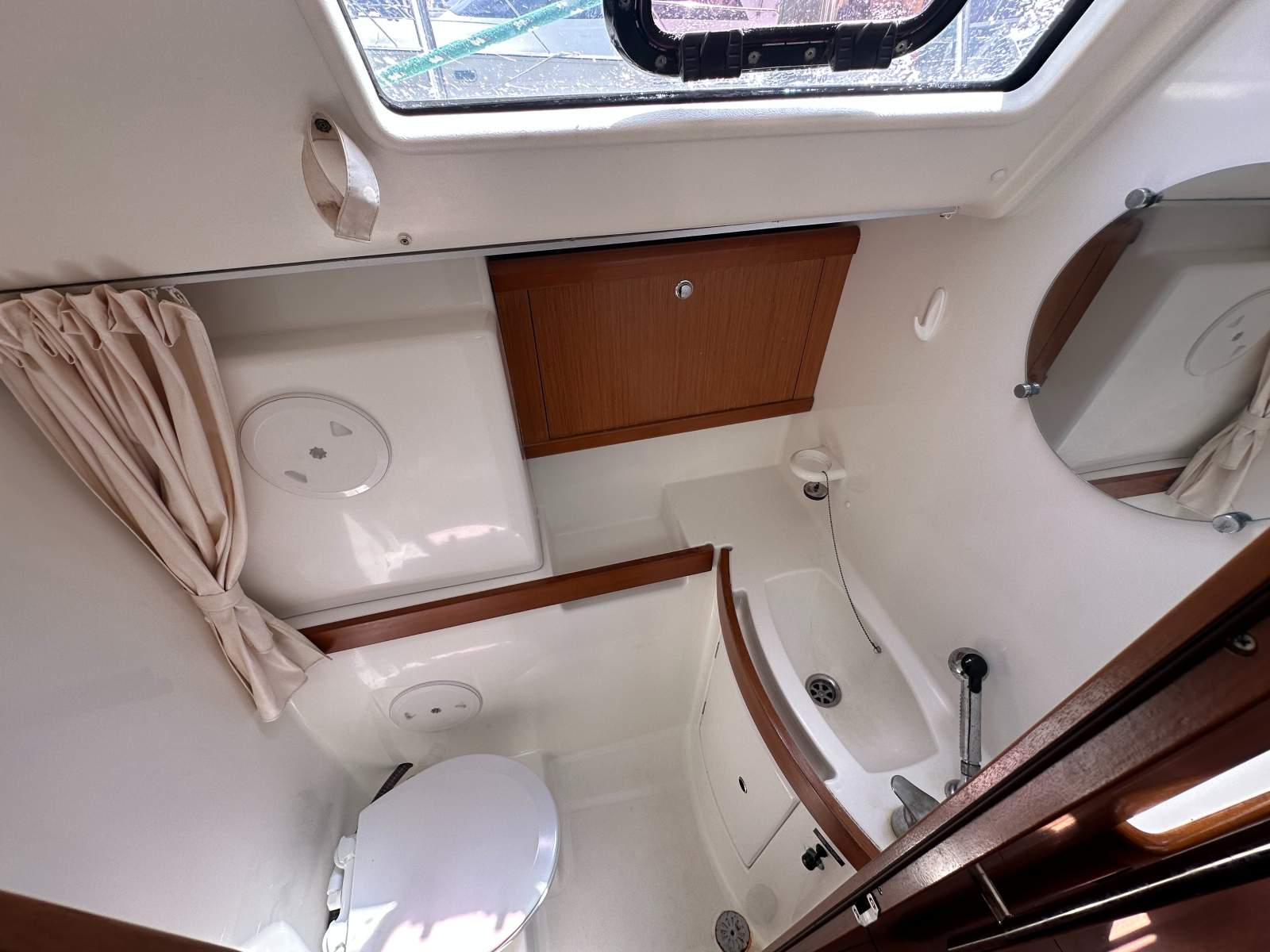 Accommodation comprises a forward double cabin, twin single cabin and two generous aft doubles, supported by two heads with showers. Ventilation is excellent thanks to multiple deck hatches, portlights and fans throughout.