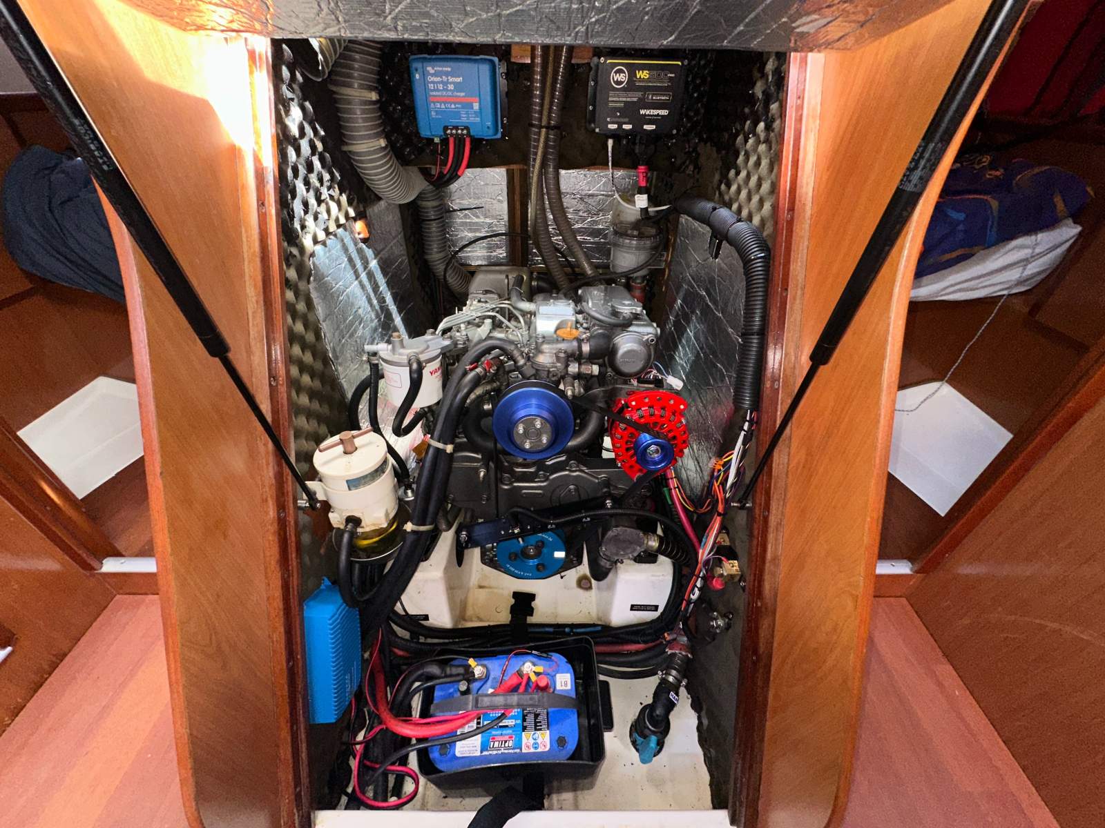 Powered by a reliable Yanmar 56hp diesel and supported by a substantial electrical system with shore power, inverter and solar array, she offers excellent independent cruising capability. Recent upgrades to batteries and charging systems further enhance her self sufficiency.