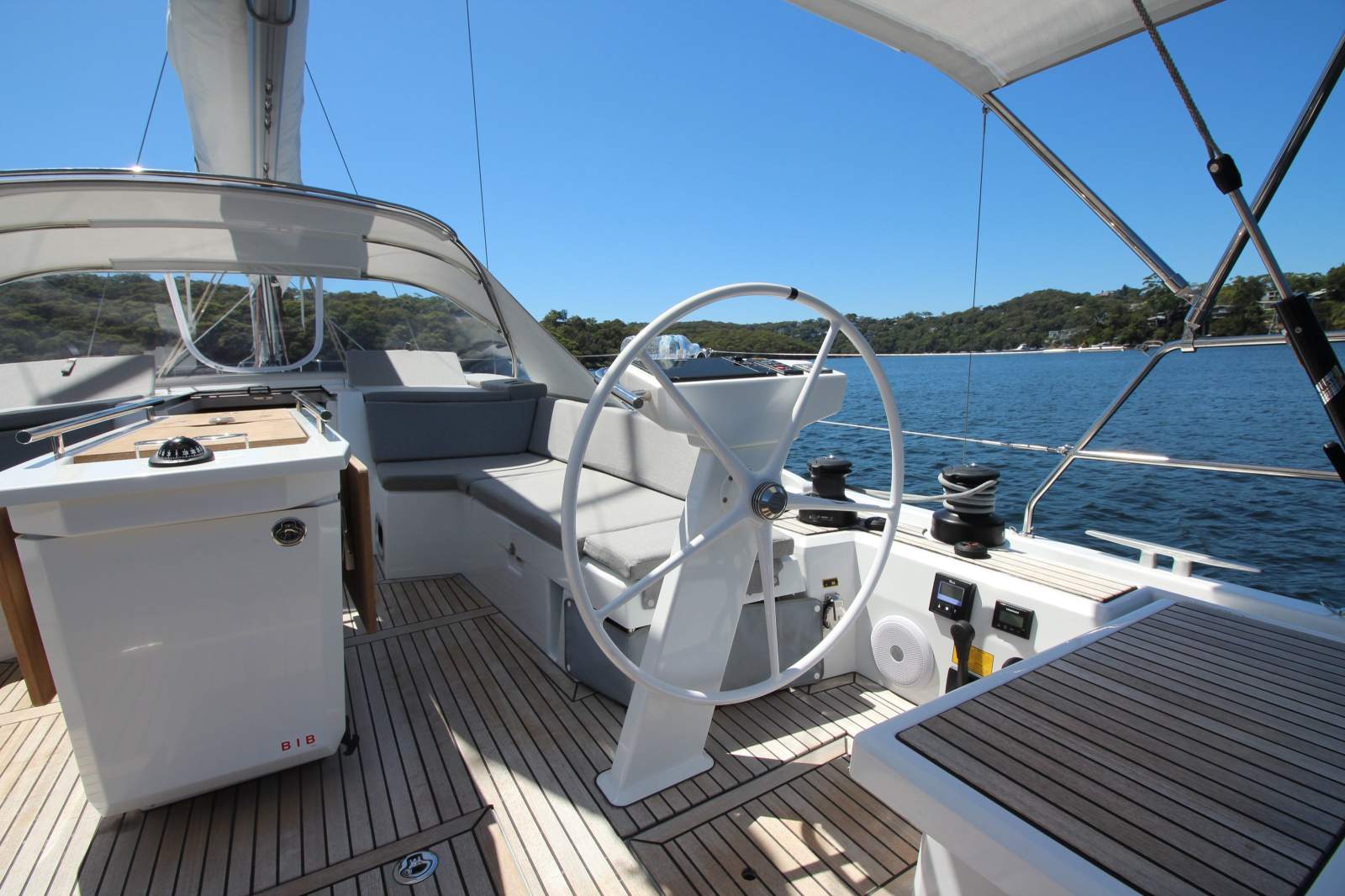 Specified for both luxury cruising and competitive club racing, she features the upgraded deep-draught performance keel, taller tapered mast, North 3Di sail wardrobe, electric winches and a full B&G electronics package with twin Zeus3 plotters. The upgraded 80HP Yanmar saildrive, retractable bow thruster and folding prop make handling effortless.