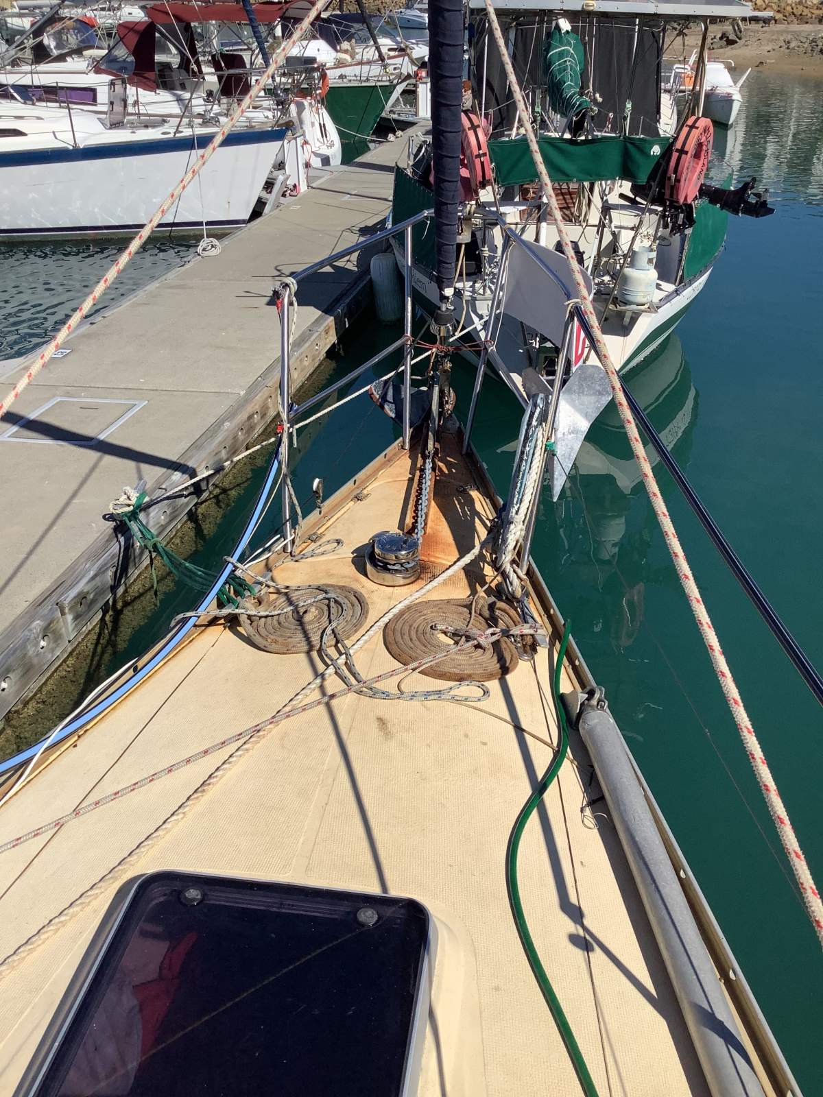 The boat needs paint and love but she is ready to go again. I'll sail her with you for a while if you would like to figure her out. She has a 3 bladed prop and a spare 2 bladed one but she needs a folding one. 2k pulls it up. She is set up for single handed work and I have sailed her by myself all over Indonesia.. There and back.