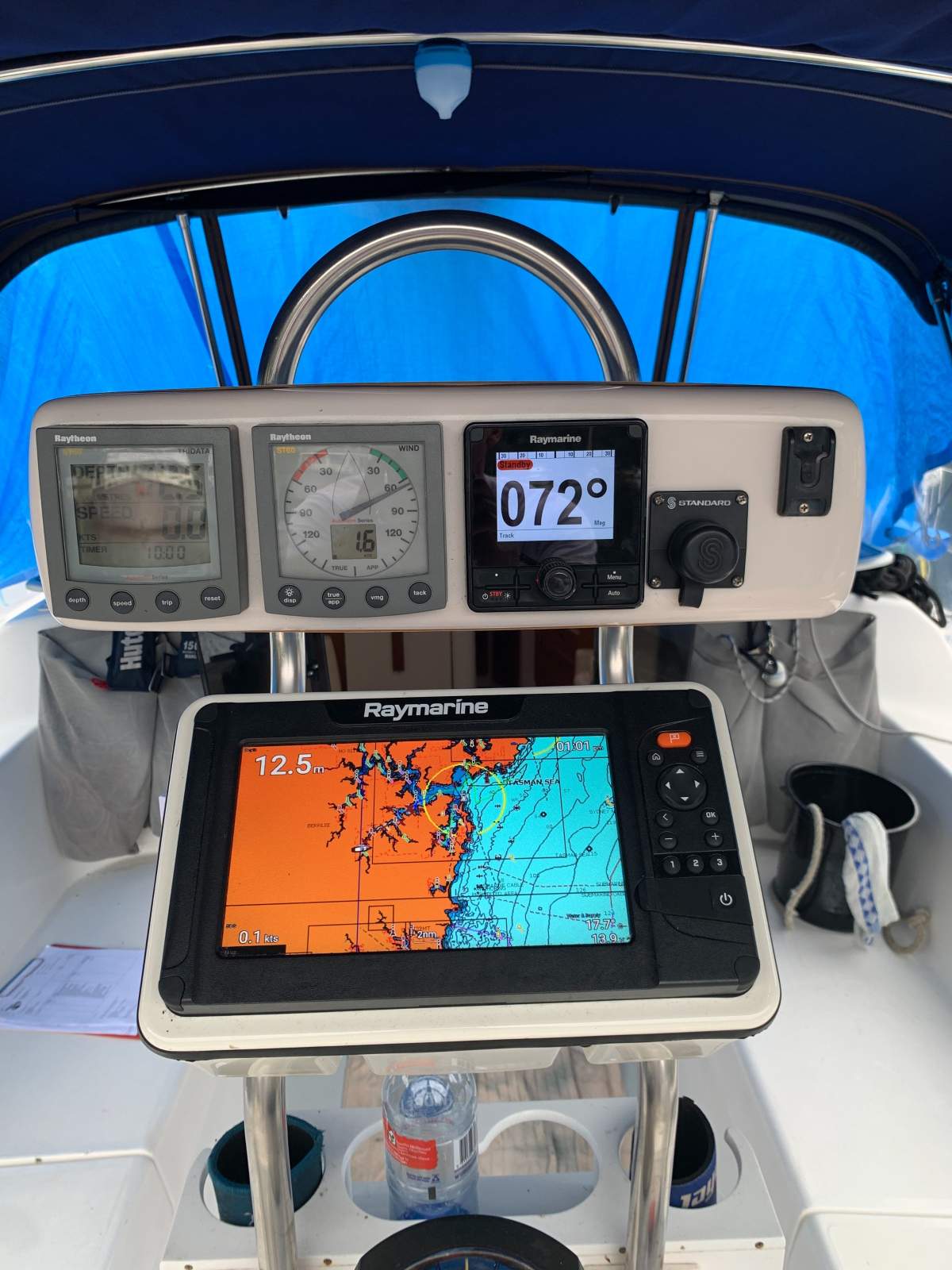 Raymarine Evolution auto pilot system. New compass, acu, head unit, raytheron ST60 wind and ST60 multidisplay units. Raymarine Element chart plotter( 2023) Garmin VHF115I ( 2023)