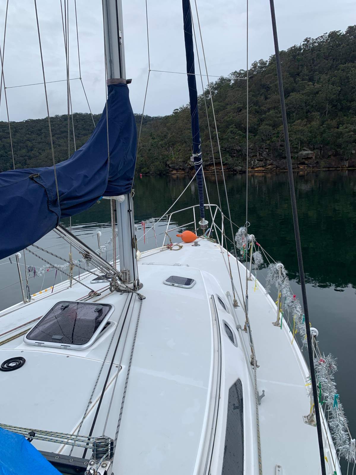 Battened main with two reefing points, furling Genoa ( Shaefer) sails in good condition with lazy jacks. Main sail covers.