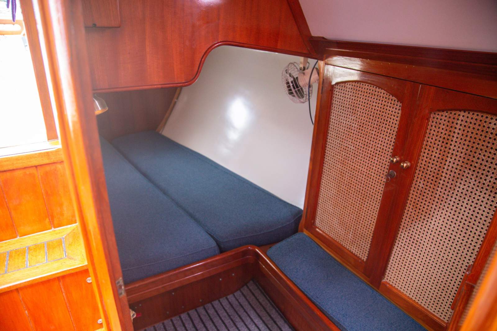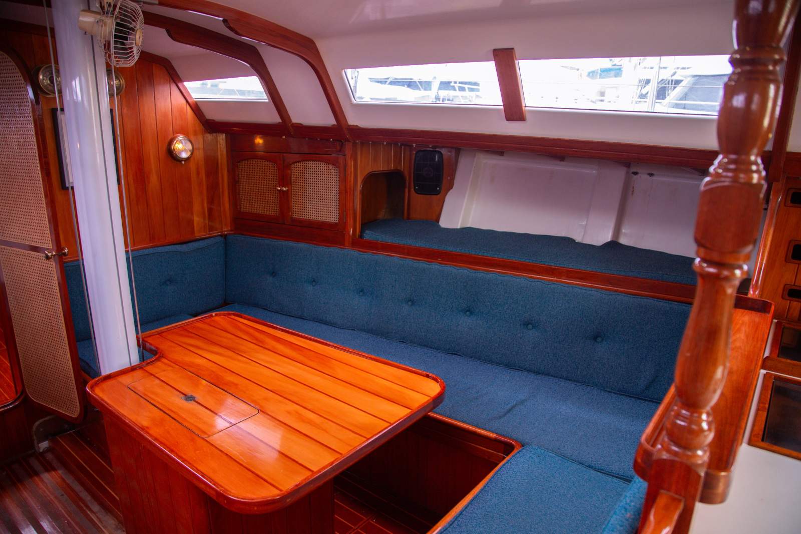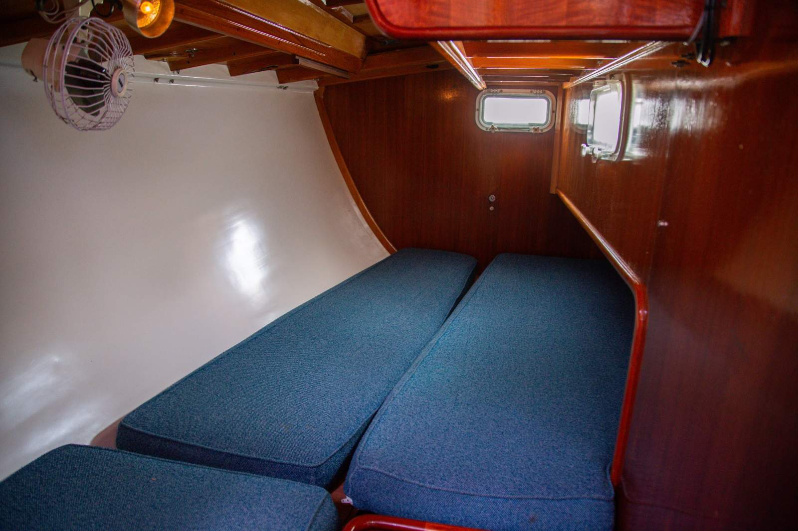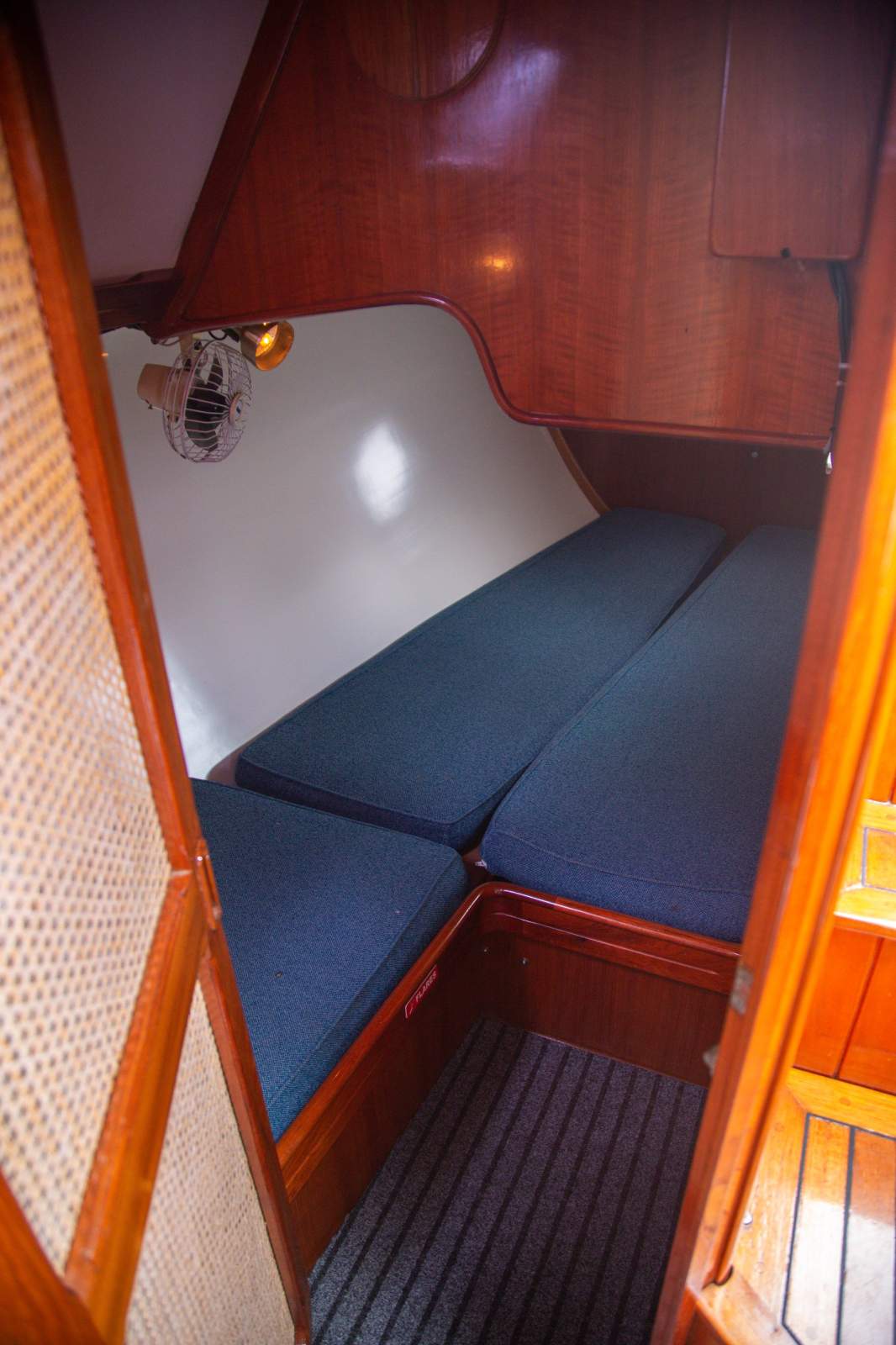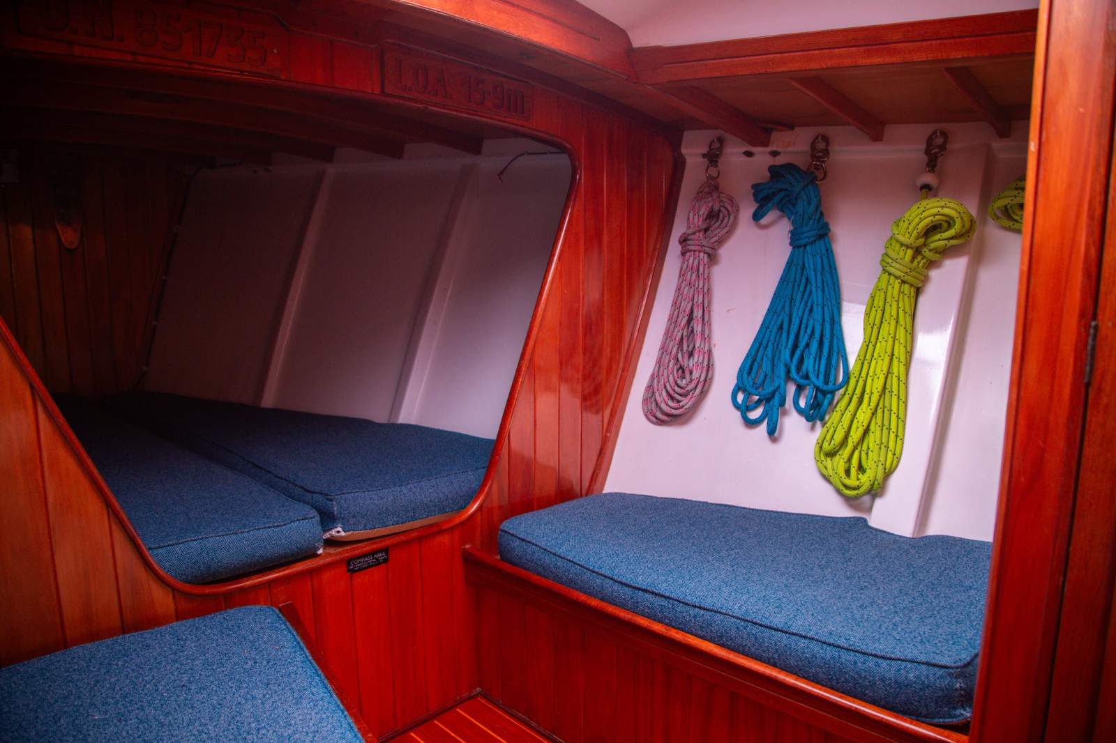 Exceptional accommodation for both a race crew, or cruising. There are two double aft cabins, one with ensuite. The forward cabin features a double and single berth. The saloon comfortably provides an additional 4 single berths.