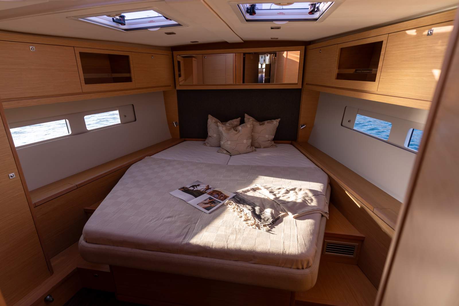 Energy and onboard systems are designed for true independence. A comprehensive Victron Energy setup includes a 5000W inverter charger, solar integration and advanced monitoring, supported by a Fischer Panda generator and an unused Spectra watermaker. Navigation is equally well equipped with a full Raymarine suite including chartplotter, radar, AIS and autopilot.