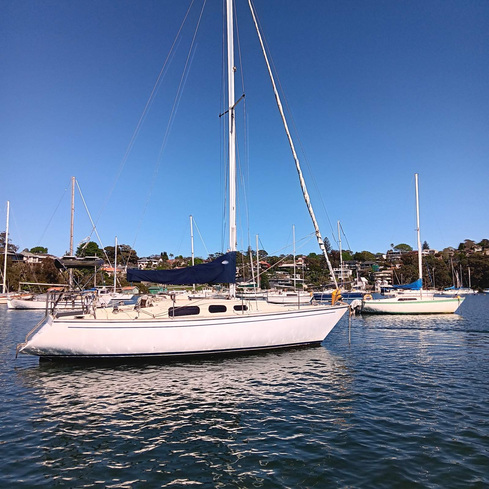 Volvo 20-20 diesel, very low (191) hours. Hull and deck in good condition, hatches updated, self tailing winches, jib furler, anchor winch. Good sail wardrobe. Ready to go. Shipwright's own boat.