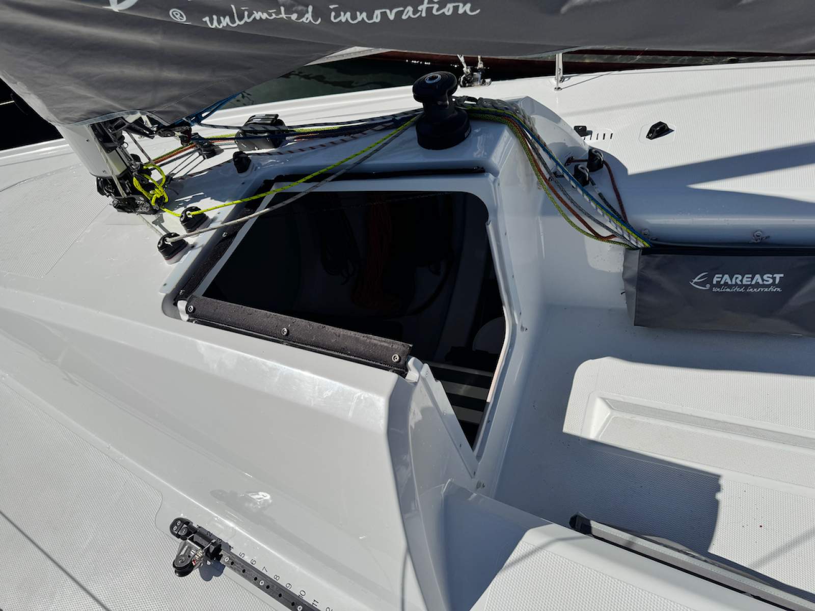 - Cabin top Harken halyard winch