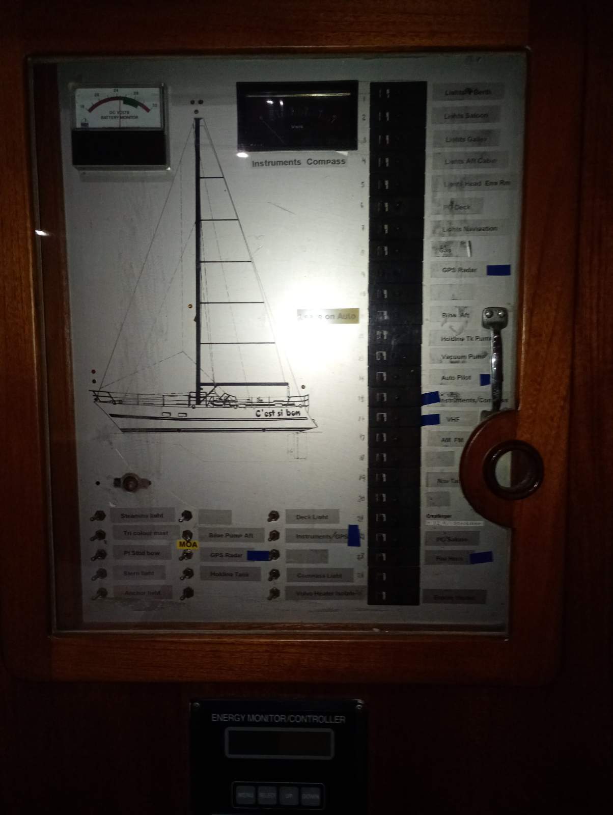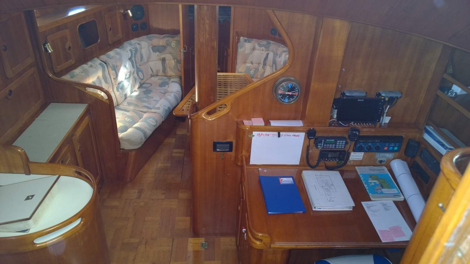 Chart plotter. G. P. S. Auto pilot. Wind vane steering. Full set of nav in cockpit. VHF and HF radios.