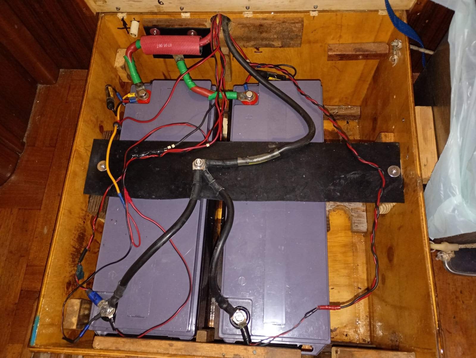 New house batteries. 12 and 24 volt alternators on engine. Solar power.