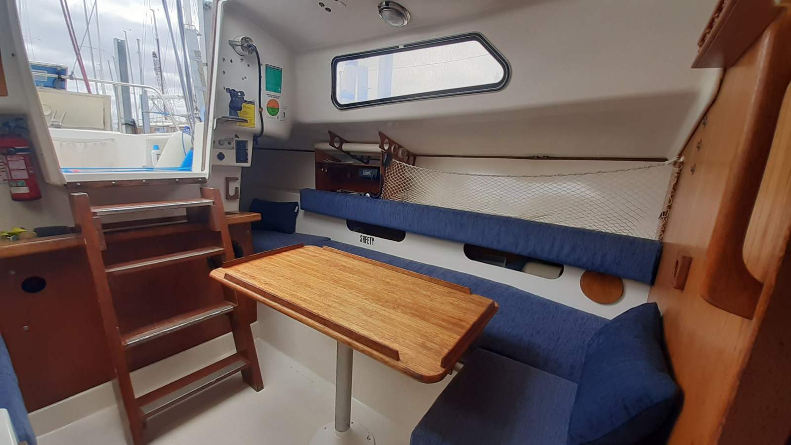 She is well set up to be easily sailed shorthanded with easy access to the primary winches and the mainsheet in easy reach of the helm and all lines lead back to the cockpit. There is easy access around the side decks, and plenty of space on the bow.