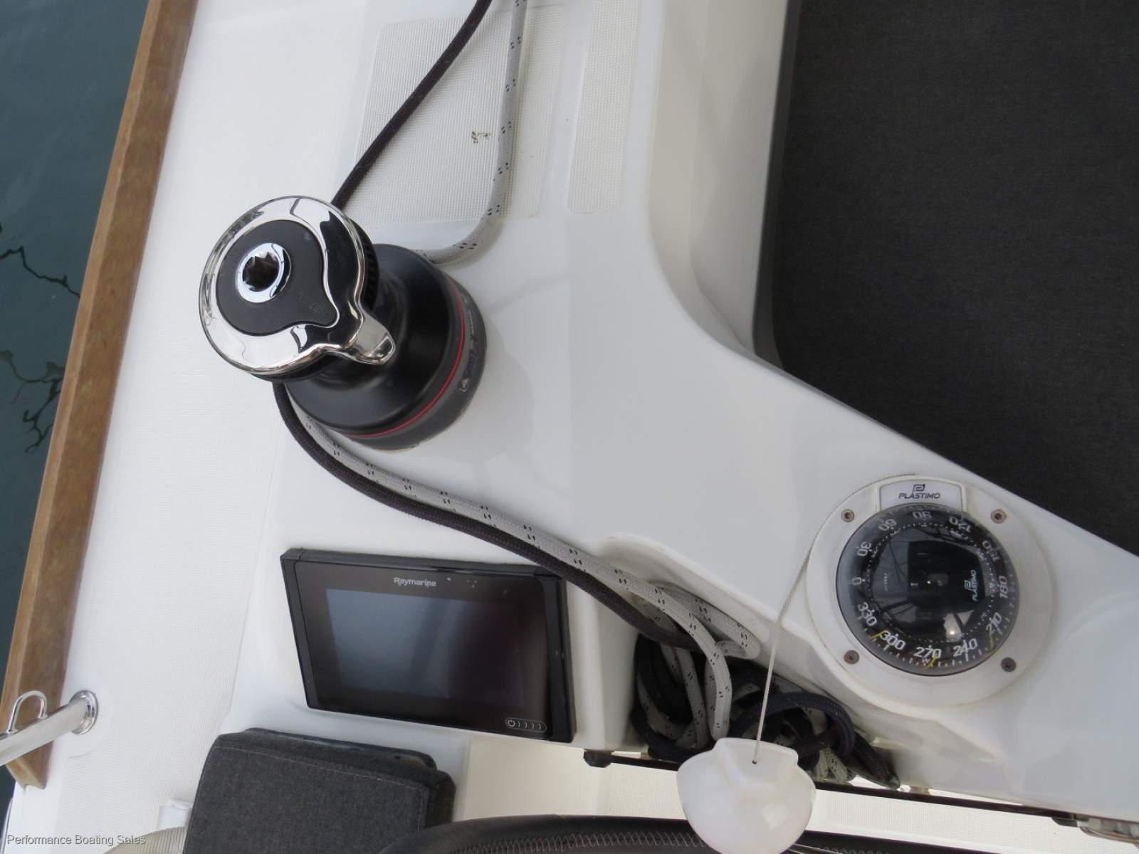 This example is highly equipped, lightly used and optioned for ease of handling with an in-mast furling mainsail and bow-thruster. It has the additional coach roof winches, adjustable jib leads, whisker pole and GRP bowsprit for flying the supplied Code 0. The electric anchor winch has a cockpit remote with chain-counter, there are 7" MFD's at each helm, it has a full set of cockpit cushions, the teak cockpit table and teak cockpit floor options, transom hot & cold shower, 200W of solar mounted on the 4-bow Bimini. It also comes with a tender and electric outboard.