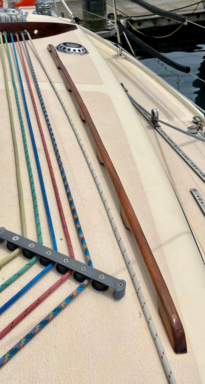 Topside rails and dodger base re-varnish - completed