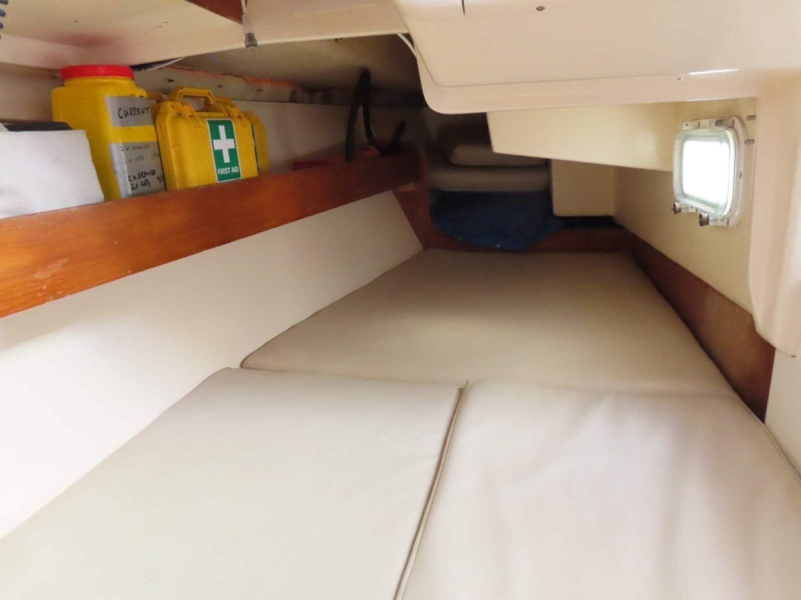 Excellent accommodation for cruising with family and friends including a double v-berth forward, honeymoon double quarter berth aft, the dinette can convert to an additional double with single settee berth opposite in the saloon.