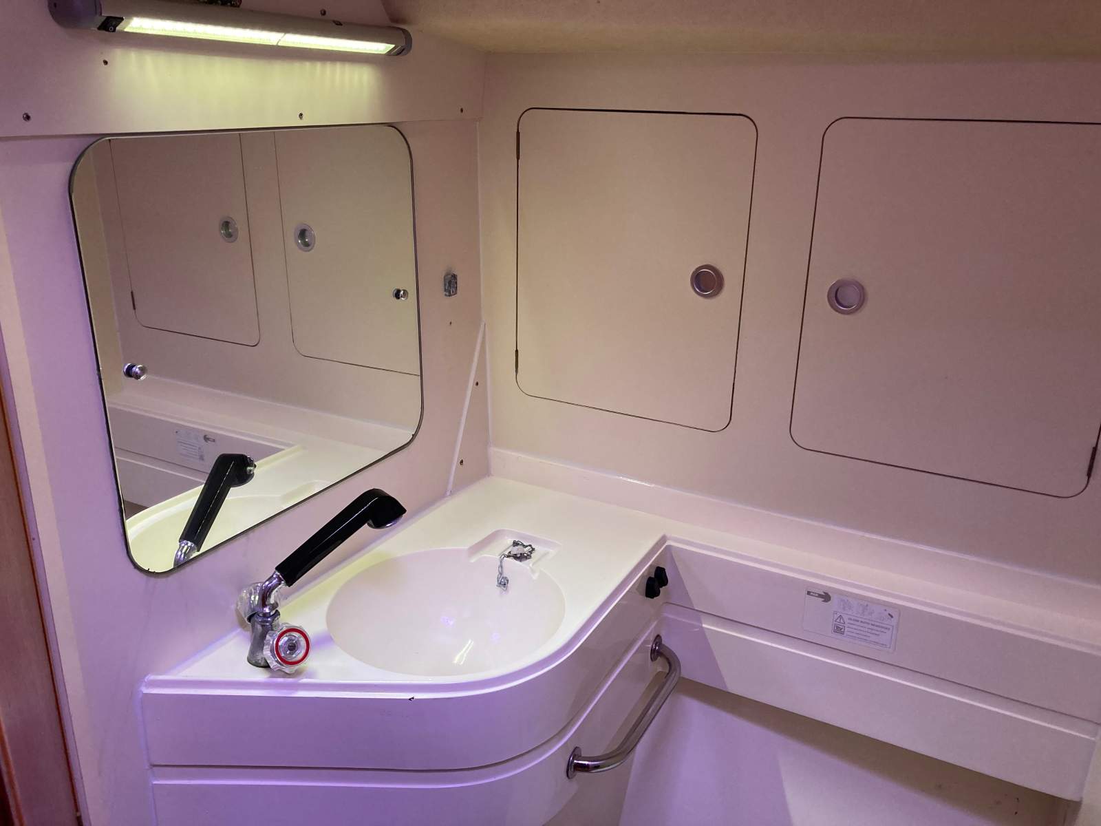 Water tanks hold a combined 450 litres (replaced 2012)with a tap divider. Hot water is by calorifier-unit heated by both 240v shore power and the engine when underway.
