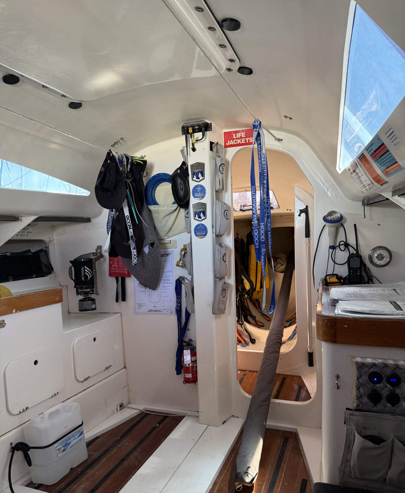 For the past 2 years she has been a hybrid inshore and offshore racing boat, receiving several substantial upgrades - new lithium ion electric system, smart alternator and fully redone keel and tiller. She is fully cat1 ready with a full inshore and offshore sail wardrobe and ready for a new adventure with a new skipper and crew.
