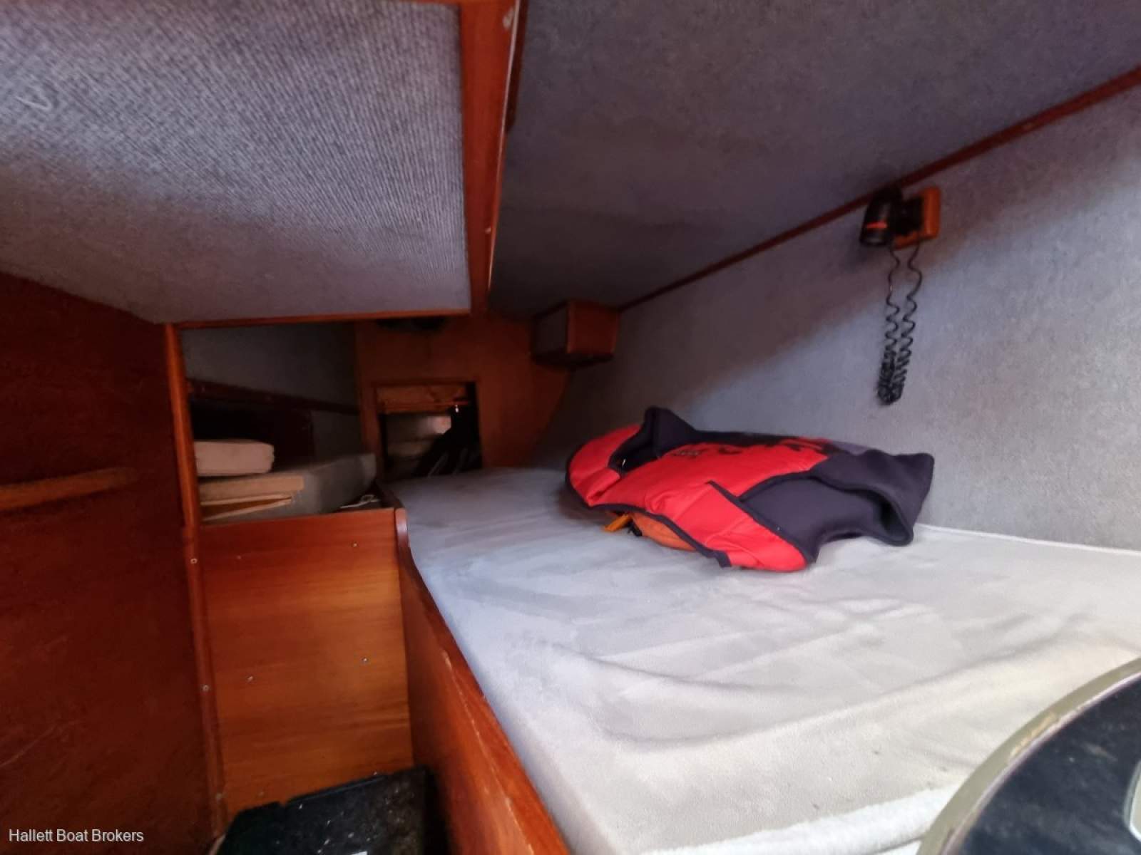 V berth cabin forward with a sink unit and storage stardoard. To port is an enclosed shower followed by a twin berth cabin with a sink unit with an enclosed head. The main cabin has an "L" shaped settee and large "U" shaped galley area port with a settee and navigation station starboard. Aft port and starboard are quarter berths.