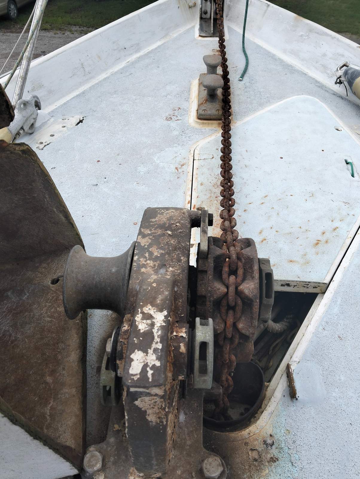 Manual Anchor winch, 70m 10 mm chain, plough and danforth anchors.