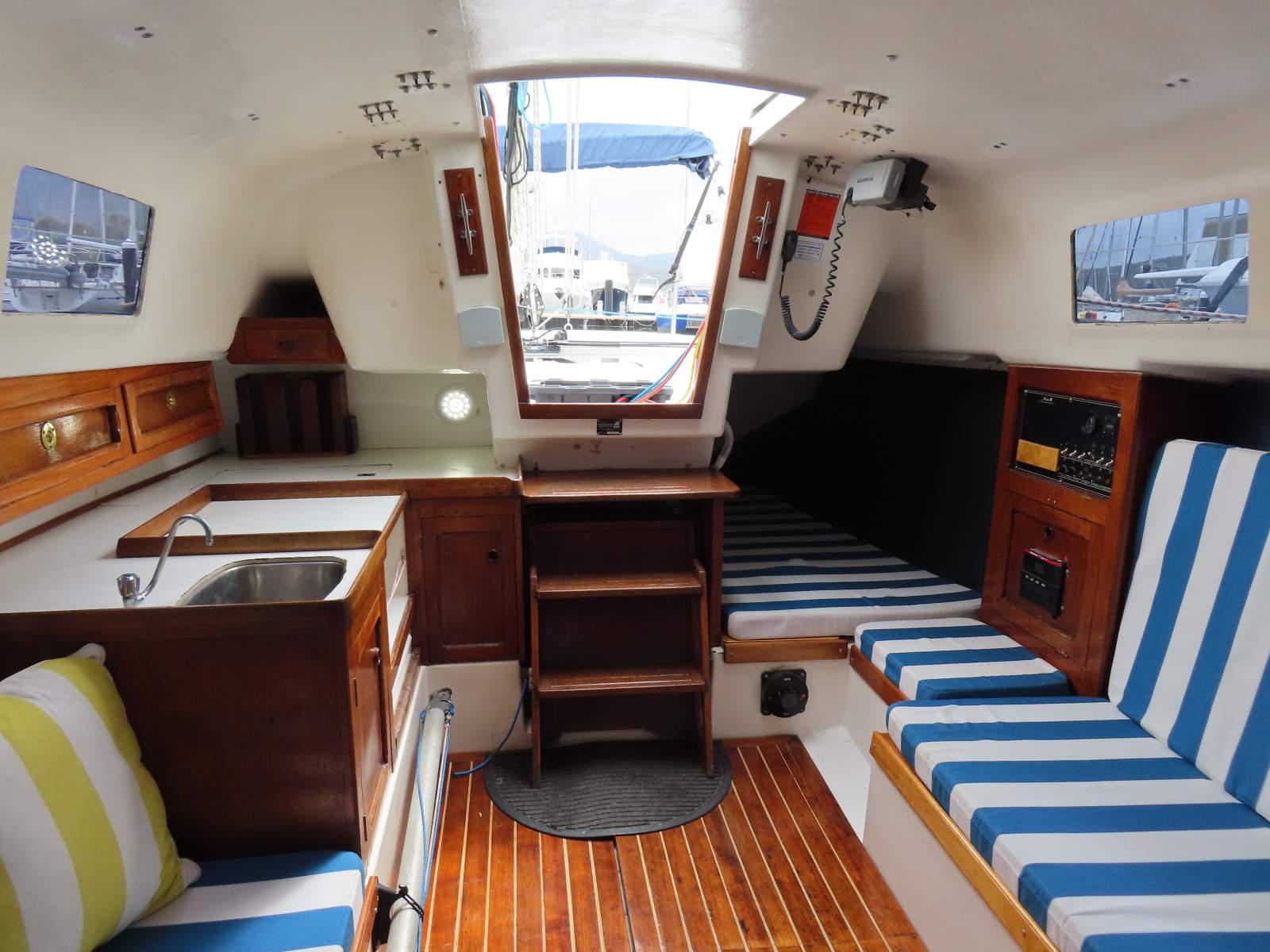 Excellent accommodation for family cruising including a generous double V berth forward, King single quarter berth aft, and two single settee berths in the saloon.
