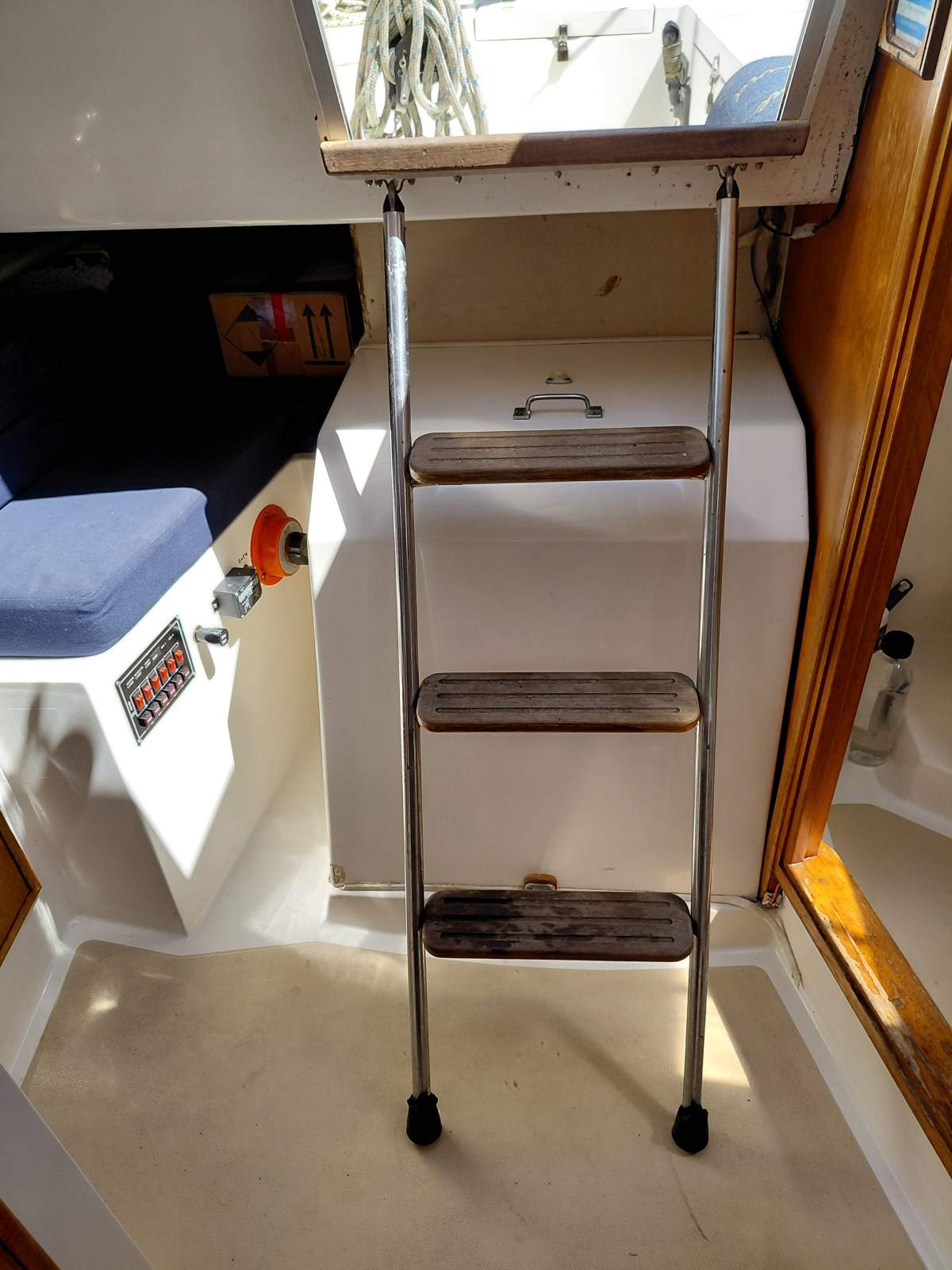 This boat has some defects, starboard side lifeline stanchions have been bent inwards (see second picture and last two pictures), lights up mast not working (steaming and masthead), running rigging is aged etc. These matters have been factored into a reduced price