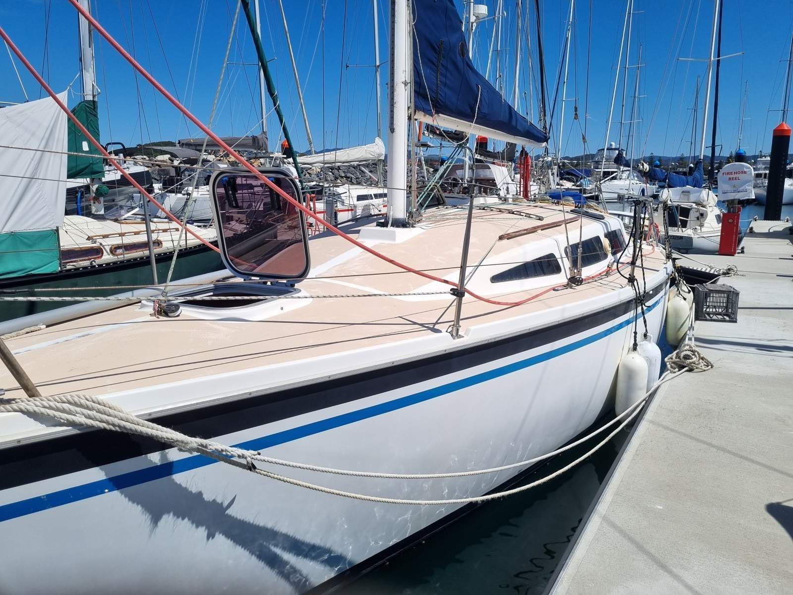 Sails excellent condition. 2 mains 2 headsails both with new uv strip's. I symmetrical spinnaker, 1 assymetrical spinnaker. Engine starts easily and runs fine. Used and sailed regularly.