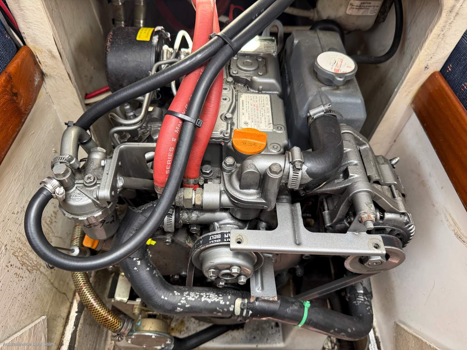 3YM20 sail drive diesel swinging a two blade 'Slipstream' folding prop.