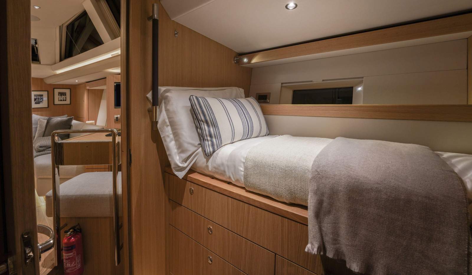 Below deck, JaZoFi offers true luxury with seven berths across four beautifully finished oak-lined cabins, including a sumptuous owner's stateroom. The saloon is light-filled with seascape windows and adaptable dining, while the galley is equipped with premium appliances such as induction cooking, Quooker boiling water tap, dishwasher, and washer/dryer. Entertainment and connectivity are top-tier, with integrated Bowers & Wilkins audio, Apple TV, and Starlink internet.