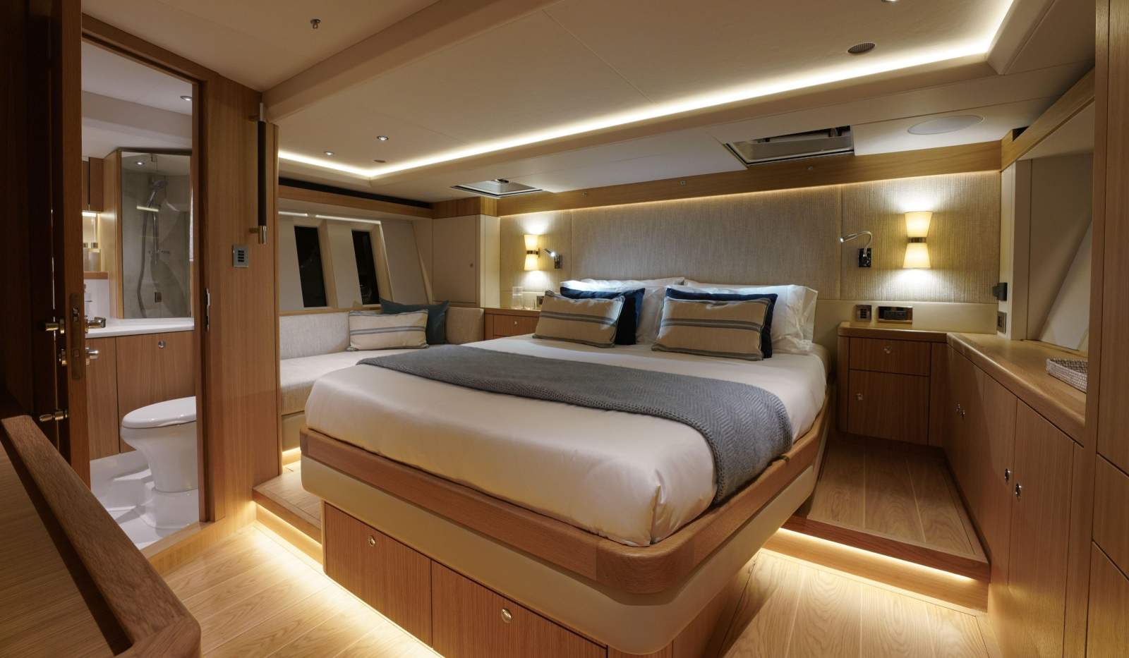 Boasting effortless sail handing thanks to her hydraulic in-mast furling, electric winches, and comprehensive sail wardrobe, JaZoFi is equally suited to serious offshore passages and easy for short-handed cruising. The deck layout is impressive, with teak finishes, a fold-down hydraulic bathing platform, and cleverly integrated features like recessed hatches, davits, and a spacious split cockpit for both guests and helming. Practical systems--like lithium-ion batteries, solar panels, a high-capacity watermaker, advanced B&G navigation electronics, and dual bow and stern thrusters --ensure self-sufficiency and reliability for long voyages.