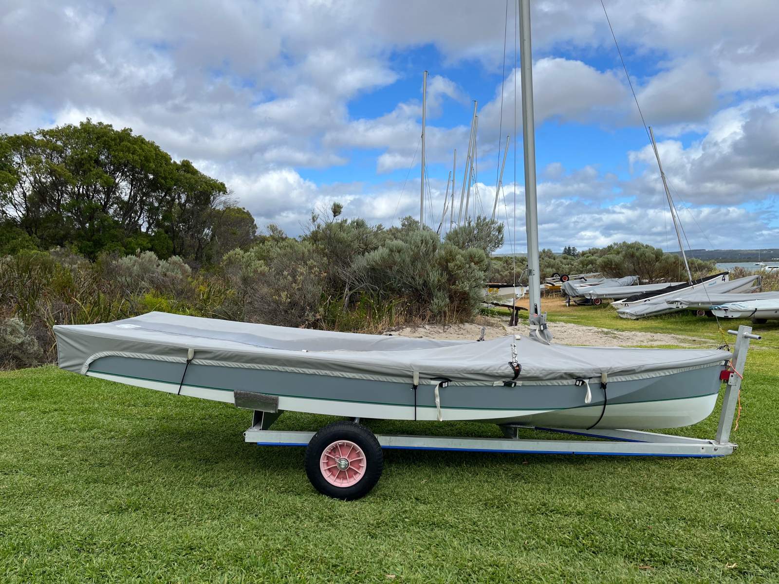 Ready for initiation for racing. 1 old Sabre sail and 1 new Shark sail. Cover and beach trolley all in very good condition. New shrouds, stay and ropes, nothing to spend.