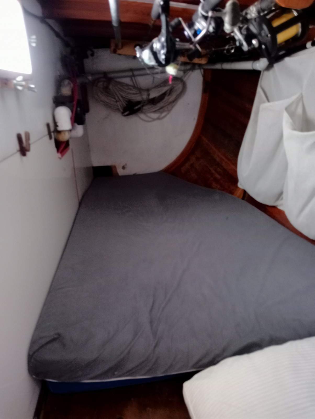 Forward cabin has King single mattress. Space for double mattress if required. 3/4size bunk for quarter berth, with foam mattress made to suit. Gc. 6foot saloon berth with foam mattress.