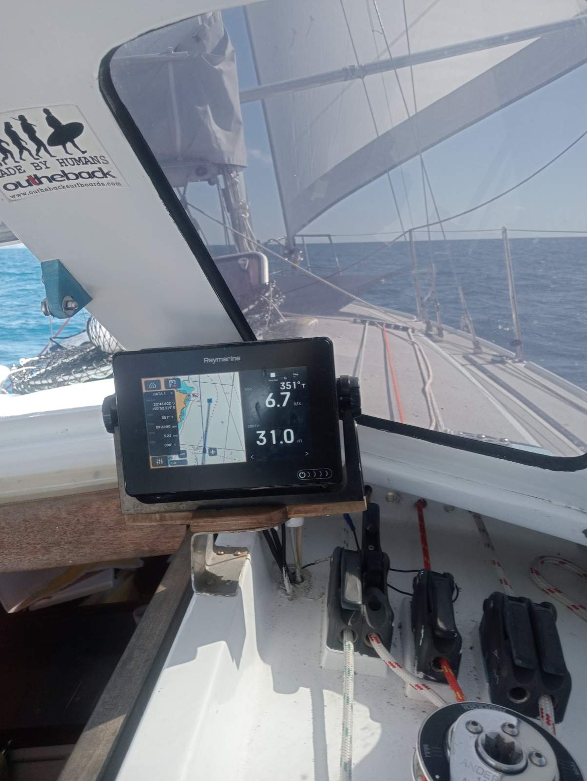 Raymarine 7" plotter and fishfinder. Icom vhf. Barrett SSB radio. Iridium go satelite communication hub. Plastimo 5" steering compass.