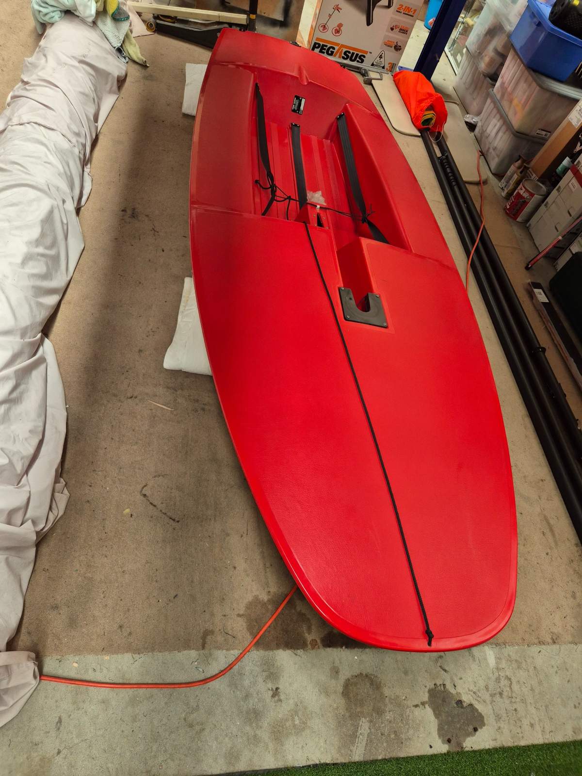 Real fun boat bit like a mini laser. Ideal for learning to sail, especially for younger family members safe and easy and quick to rig and as the name suggests fits on a roof rack and only weighs 43 kg so easy to handle. Does not need to be parked outside on a trailer and this one has always been stored hanging up in the garage roof. So it realy is in excellent condition. There is virtually no maintenance, I just used to wash the salt water off with a hose while it was on the car roof. It is a UK made boat and there are about 50,000 of them It is one of the most popular boats of its type. If you do tip it over it is very easy to right itself and it has a self bailer to drain any excess water from the cockpit.
