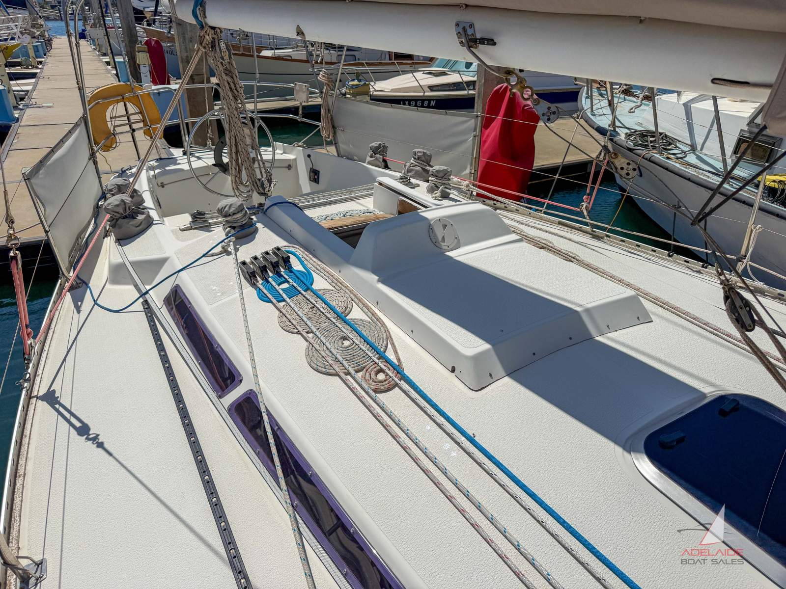 This 1988 Van De Stadt designed Mander 11 is a standout example of a true cruiser-racer, blending classic European performance lines with solid Australian craftsmanship by respected builder Peter Mander. At 36'5" (11.10m) with a 3.5m beam and 2.07m draft, she offers confident offshore capability, excellent upwind ability, and the interior space needed for comfortable cruising.