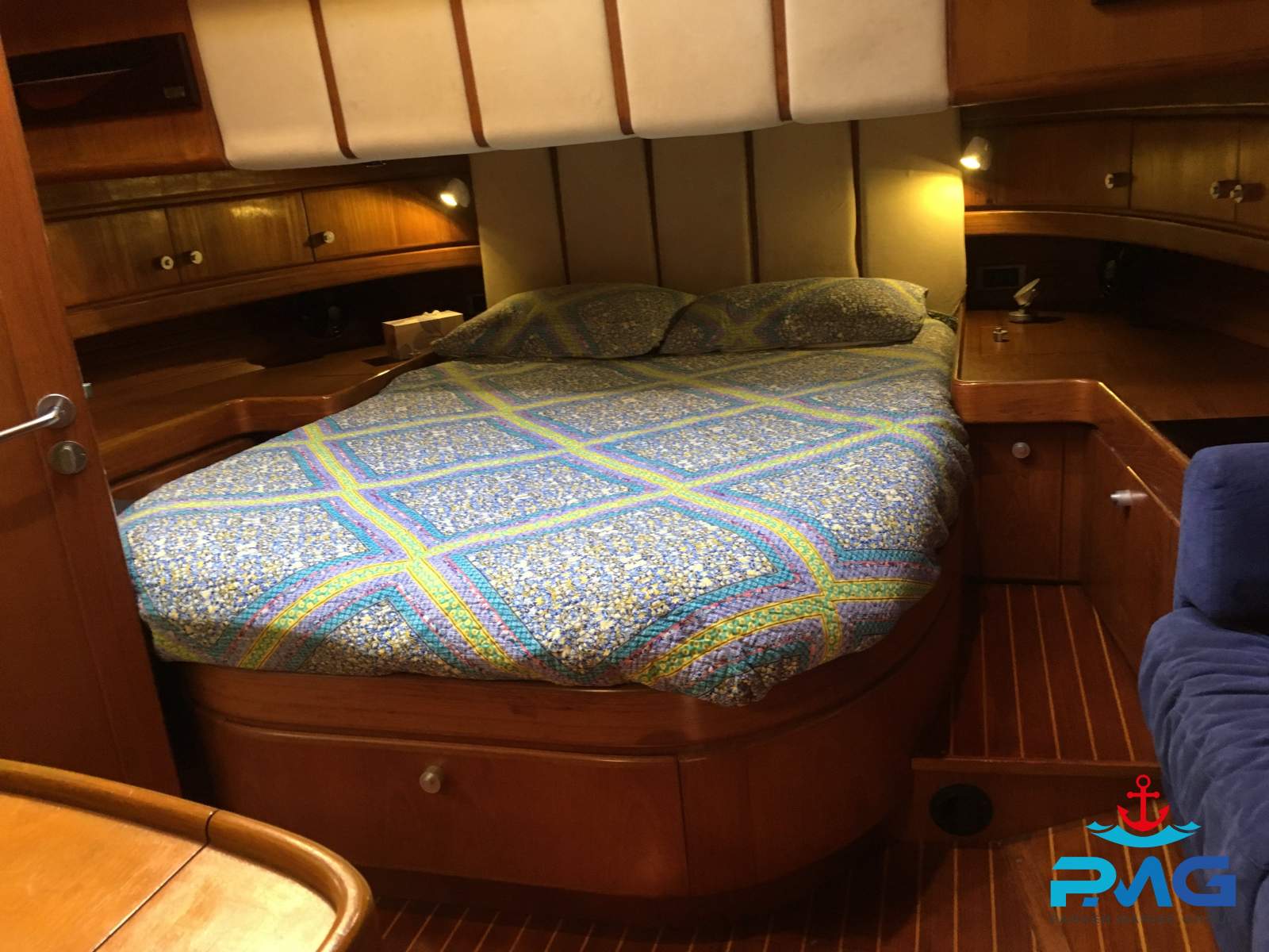 The interior is crafted with classic Wauquiez teak joinery and boasts a fully equipped galley, a bright and airy saloon, and a dedicated workshop area--a rare and valuable feature for serious cruisers.