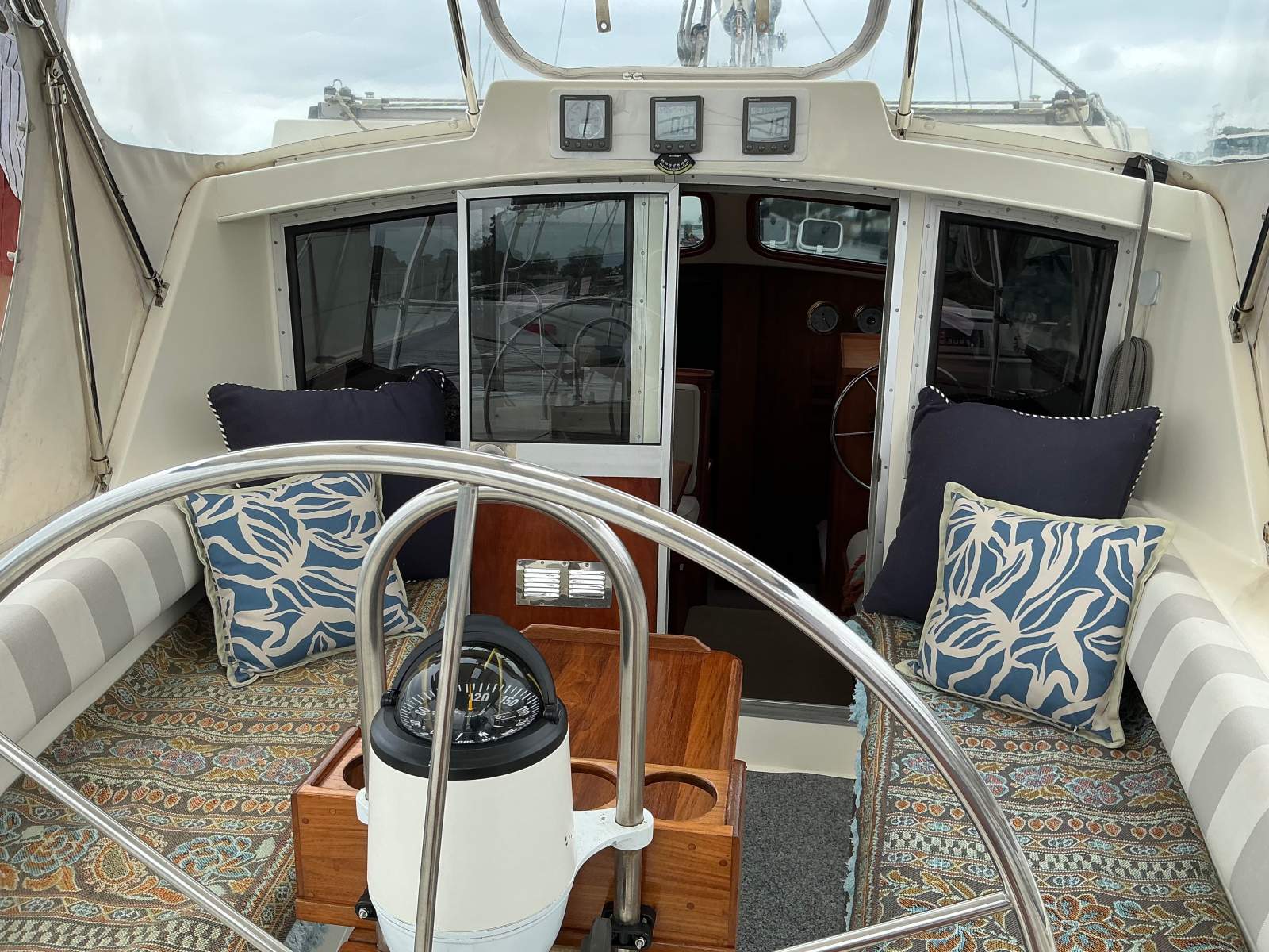 Raymarine wind, depth, speed, AIS interactive (transmit & receive), New 2025 pedastool compass.