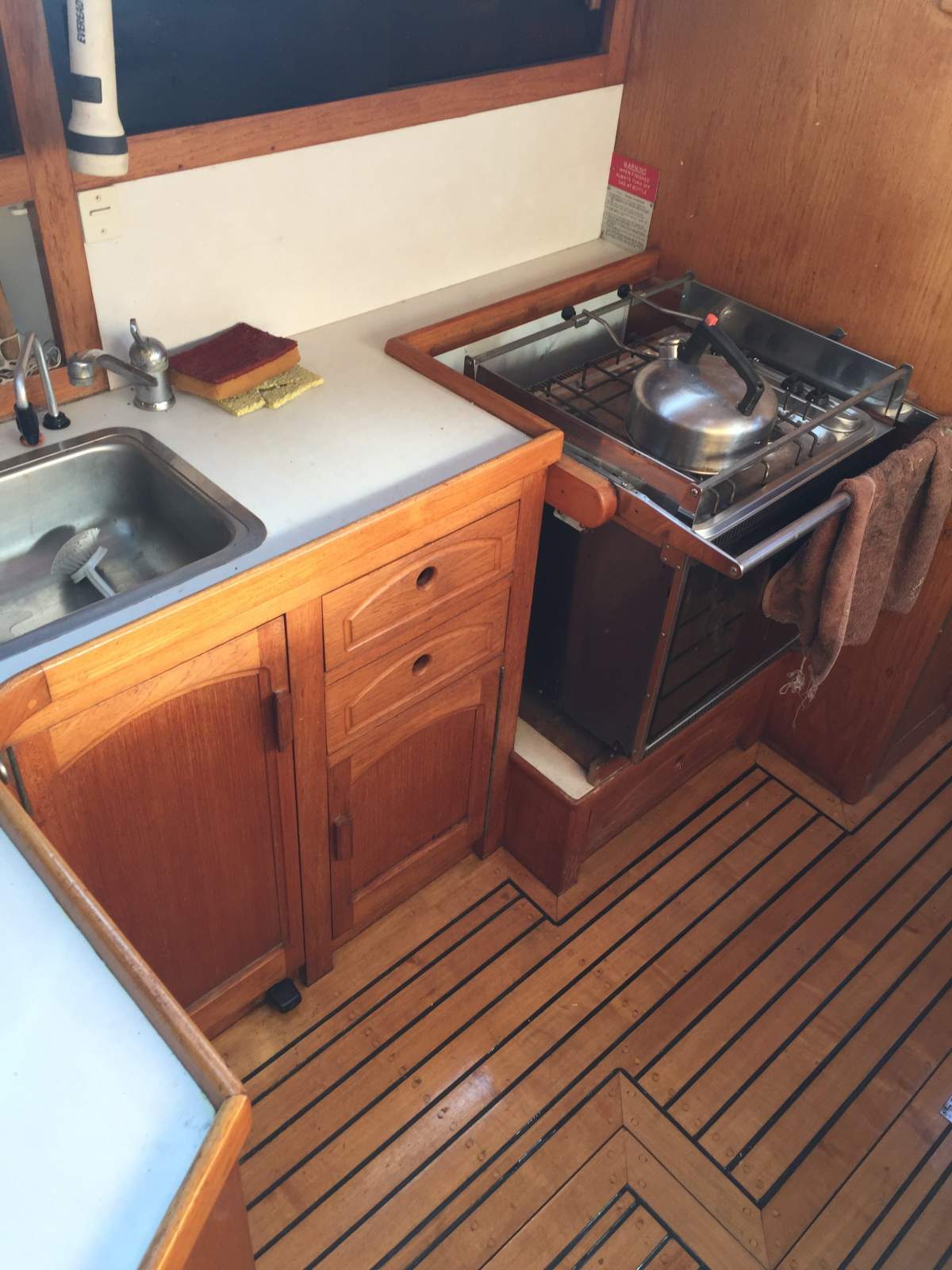 Sink - Hot and cold pressure water via mixer tap, fresh water via hand pump, saltwater via foot pump